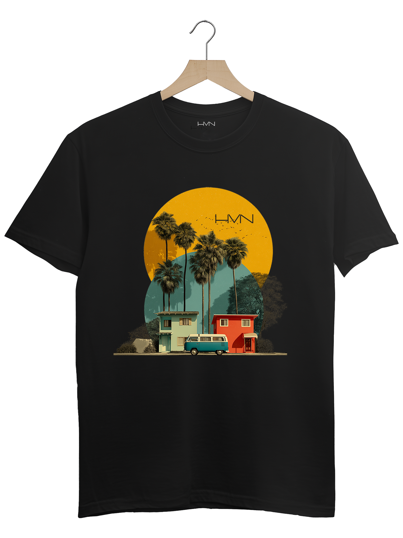 Cruising through quiet streets as the sun begins to set, the air is warm, the sky glows, and summer feels endless. This design captures that perfect moment, where time slows, palm trees sway, and every drive feels like freedom.